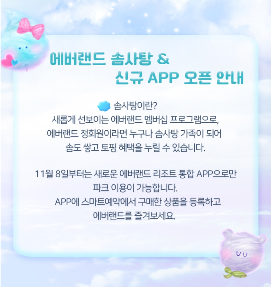 아래 표는 홈페이지 신규 가입 혜택입니다. 아직 에버랜드 홈페이지 회원이 아니시라면 이번 기회에 가입하시고 혜택도 챙기세요.
