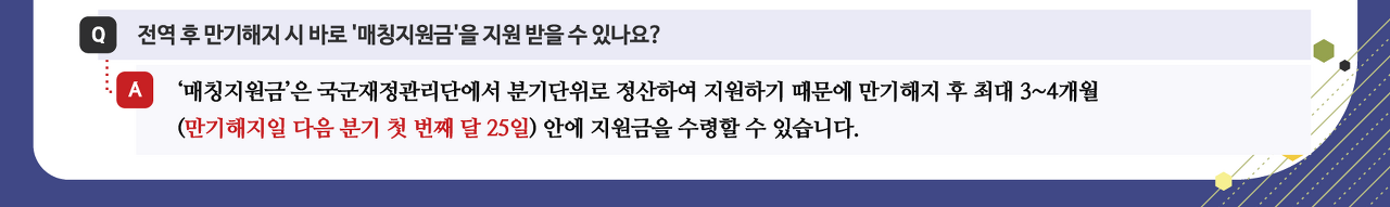 - 매칭지원금은 지급신청일 다음 분기 25일에 지급되며, 최대 3개월이 걸린다고 하니, 인내가 필요하겠습니다.