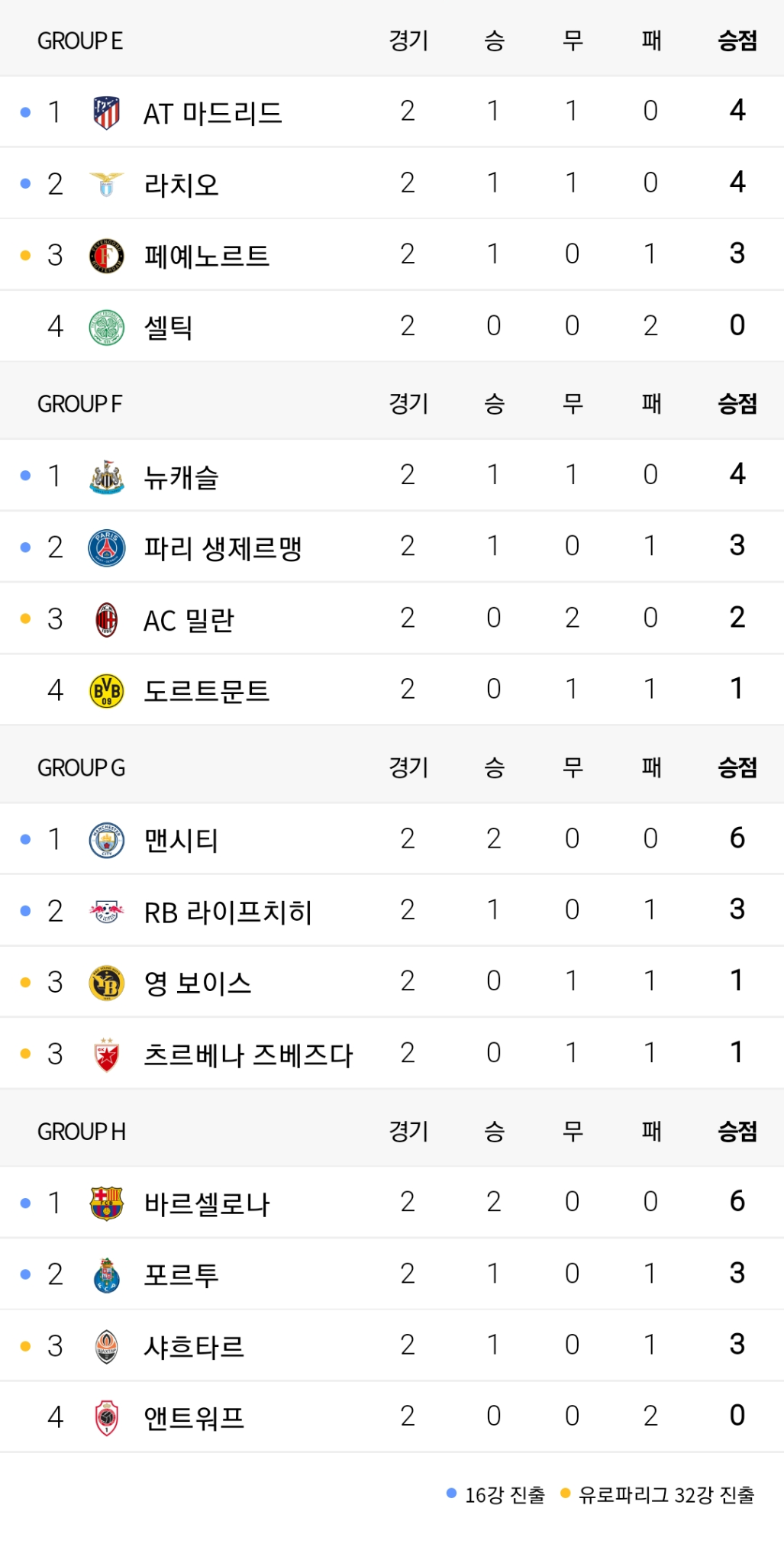 파리 생제르망은 죽음의 조라고 불리는 F조에서 2위를 달리고 있습니다. 뉴캐슬, 도르트문트, AC밀란과 앞으로 3경기를 더 치뤄야합니다.