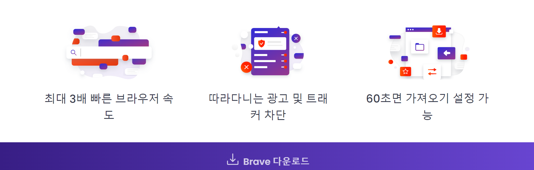 | Brave는 사용자의 개인 정보를 보호하고 웹 브라우징 속도를 높이기 위해 광고와 추적기를 차단합니다. |