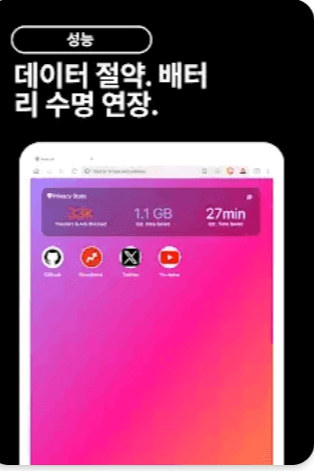 - 제3자 광고를 차단하는 애드블로커가 내장되어 빠른 속도