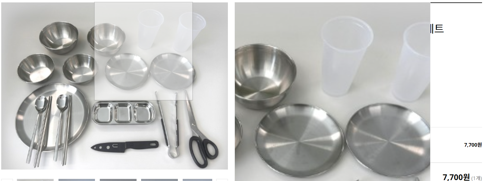 - 대여 품목은 기본 세트의 경우 접시 2개, 밥그릇 2개, 국그릇 2개, 컵 2개, 수저세트 2개, 칼 1개, 도마 1개입니다.
