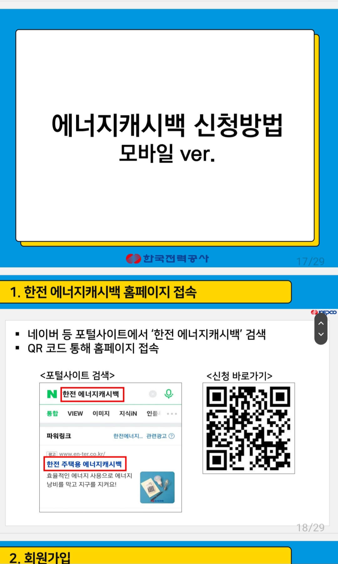 한전 에너지 캐시백 신청매뉴얼 PC 모바일 버전 에너지마켓플레이스