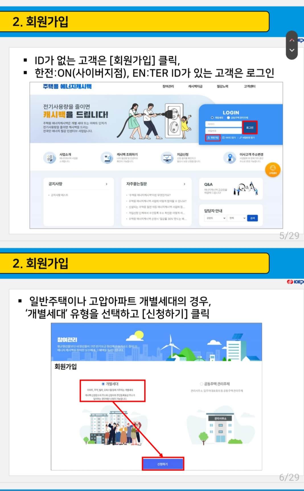 에너지캐시백 제도 참여를 희망하는 일반주택, 아파트 등에 거주하는 개별세대*는 그 주소지에 주민 등록된 구성원이 신청하며, 한전 지사 방문신청이 가능해지는 7월 전까지는 온라인으로만 신청가능합니다.
