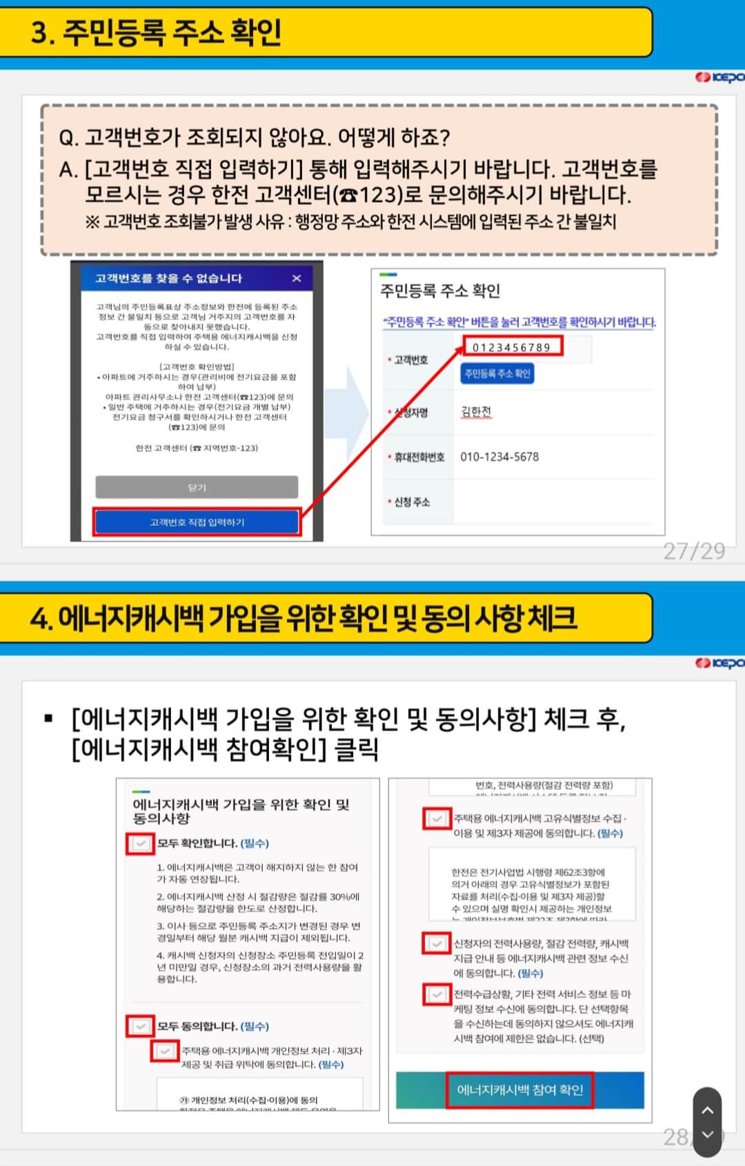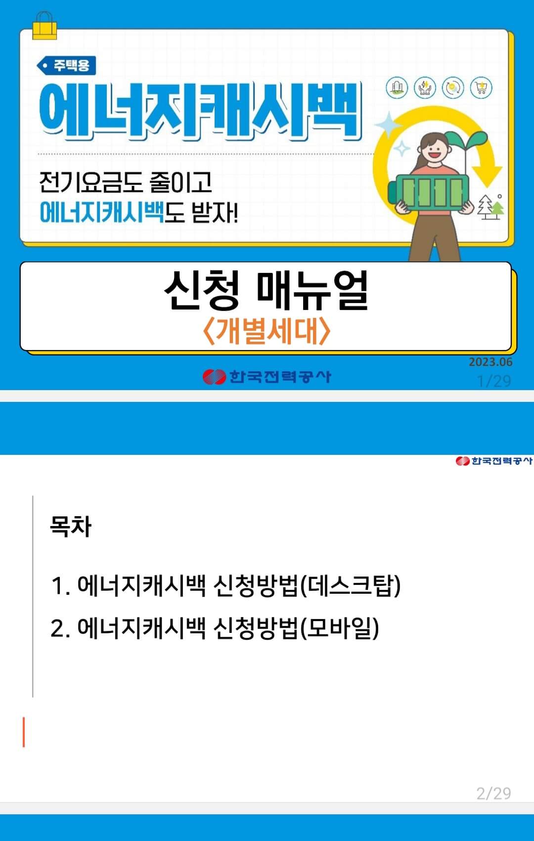 한전 에너지 캐시백 신청매뉴얼 PC 모바일 버전 에너지마켓플레이스