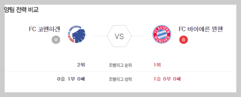 코펜하겐 바이에른 뮌헨 전력 비교