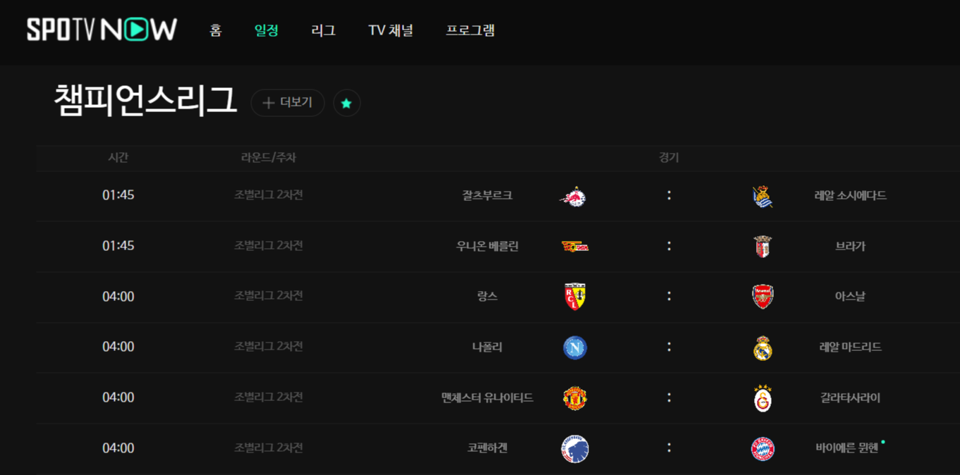 참고로 바이에른 뮌헨 분데스리가는 tvN에서 중계합니다. 이 경기는 챔피언스 리그라서 스포티비에서 독점 방송합니다.