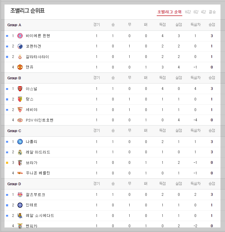 챔피언스 리그 조별 순위